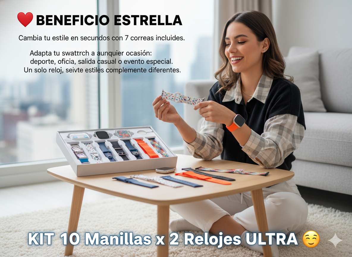 KIT 10 Manillas + Audifonos Pro2 + 2 Relojes ULTRA 🤩