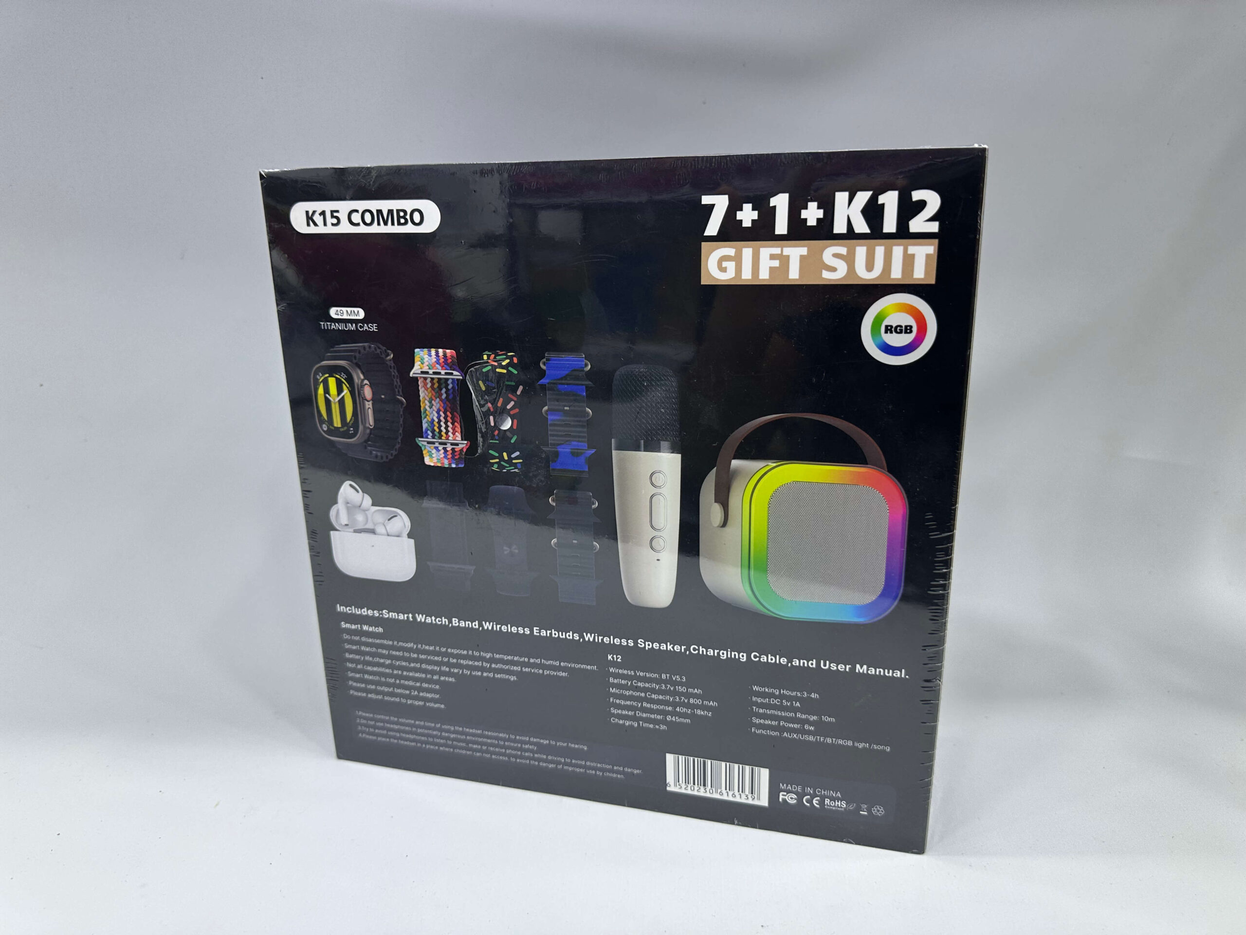Combo K15 Karaoke Gift Suit – Parlante RGB + Smartwatch Ultra + AirPods Pro 2 + Micrófono + Manillas