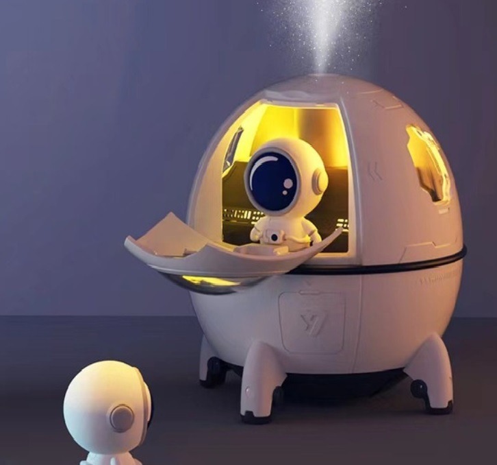 El Humidificador Astronauta Difusor de Aromas combina diseño, tecnología y bienestar en un solo dispositivo. Su estilo en forma de cápsula espacial con una figura de astronauta flotante le da un toque divertido y moderno a cualquier espacio, ya sea tu habitación, oficina o sala de estar.