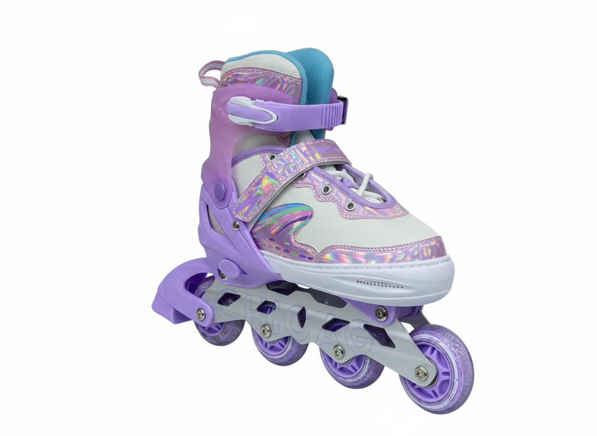 Estos Patines en Línea Ajustables de Chicago Skates® son la combinación perfecta de moda, comodidad y rendimiento. Diseñados pensando en las patinadoras principiantes e intermedias, su vibrante diseño en rosa y blanco con detalles holográficos y brillantes capturará todas las miradas, haciendo que cada sesión de patinaje sea una aventura mágica.