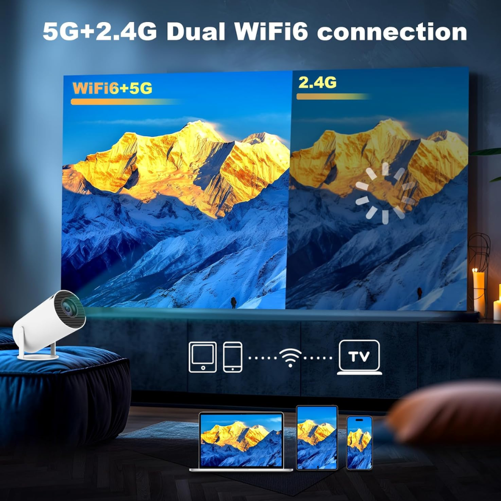 El HY300 PRO permite proyectar una pantalla de hasta 130 pulgadas a una distancia óptima de 1,68 metros, convirtiendo cualquier espacio en un auténtico cine en casa. Es una excelente opción tanto para entretenimiento personal como para presentaciones profesionales, ofreciendo calidad, versatilidad y estilo en un solo dispositivo.